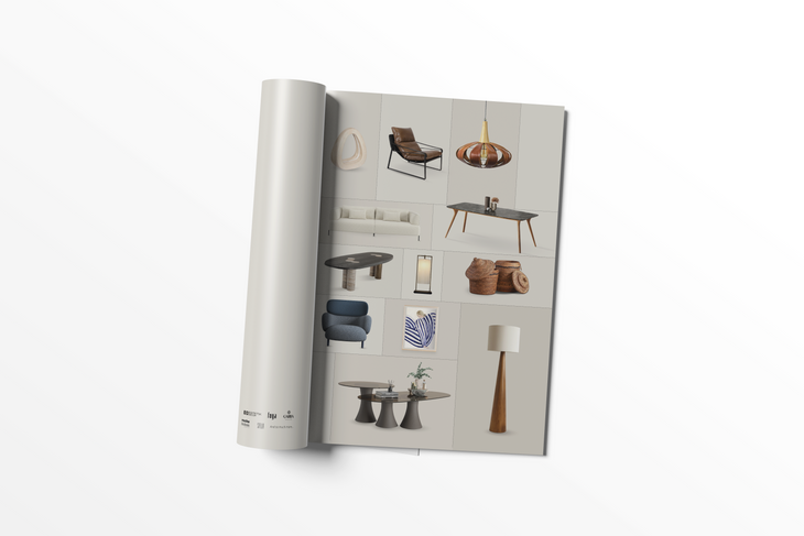 In the magazine ads prepared for Skyland HOM, I developed a minimal and structured collage approach by arranging the furniture in a grid layout.